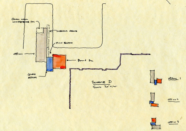 A growing student body required a school district to expand both their administrative square footage and classroom space. The school district decided to research the pros and cons of a new facility. Design concepts were drawn up showing the district how one building could house both their private administrative needs as well as public areas for students and additional classroom space.